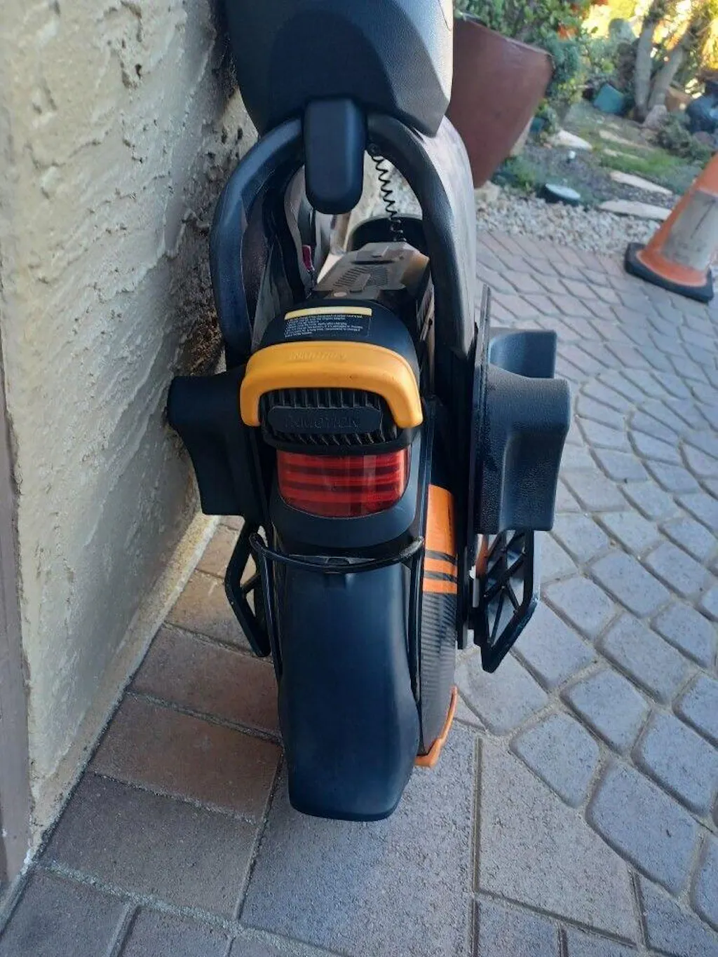 Säkerheten är i fokus med funktioner som regenerativ inbromsning, vilket inte bara ger en mjuk och effektiv bromsning utan också återför energi till batteriet. De inbyggda främre och bakre lamporna garanterar att du syns tydligt även vid mörkerkörning. Den orangea skyddsskalet minskar risken för skador vid olyckor och ger enhjulingen en unik och snygg design.